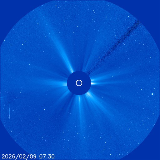 Niedawny kadr z satelity SOHO, instrumentu LASCO C3. Źródło: SOHO.