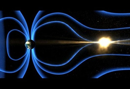 Schemat rekoneksji w magnetosferze Ziemi wywołanej intensywnym wiatrem słonecznym. Źródło: NASA SVS/GSFC.