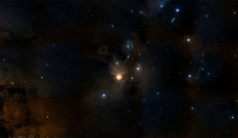 Antares (w środku, w mgławicy) i część Skorpiona w ujęciu Digitized Sky Survey/STScl/NASA – przetworzone przez CDS, S&T.